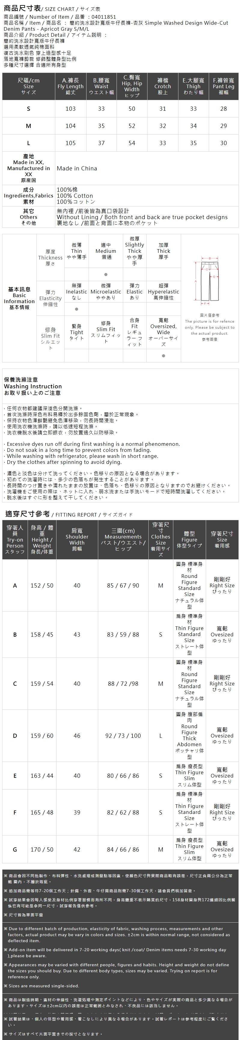简约洗水设计宽版牛仔长裤