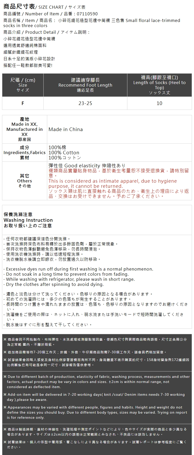 小碎花缇花造型花边中筒袜