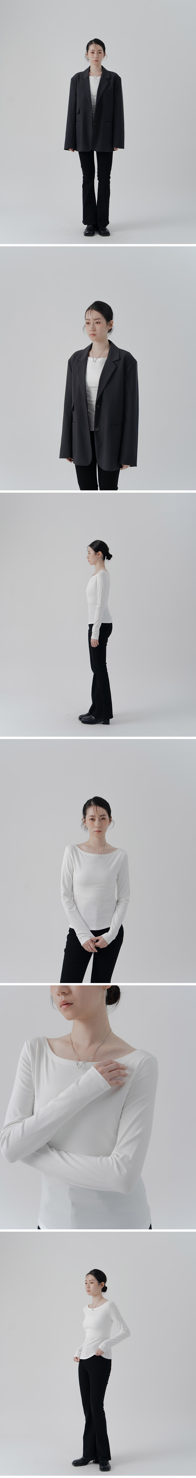 素色平领弹性设计长袖上衣