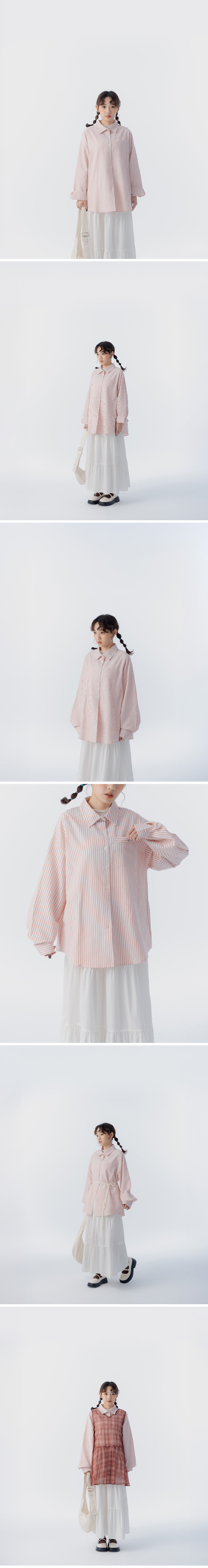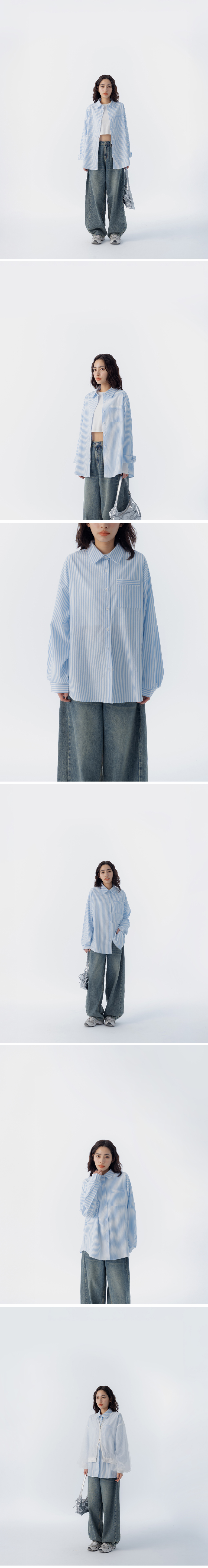 条纹口袋造型宽版长袖衬衫