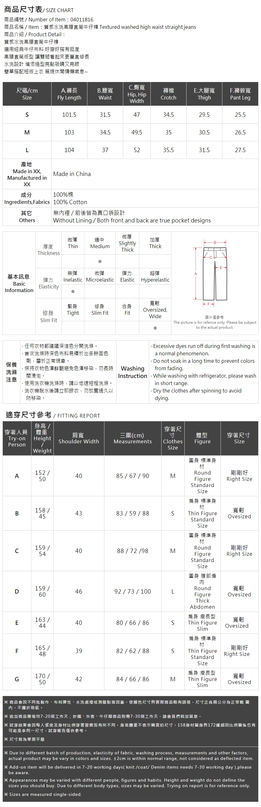 质感水洗高腰直筒牛仔裤 S/M/L【04011816】现+预