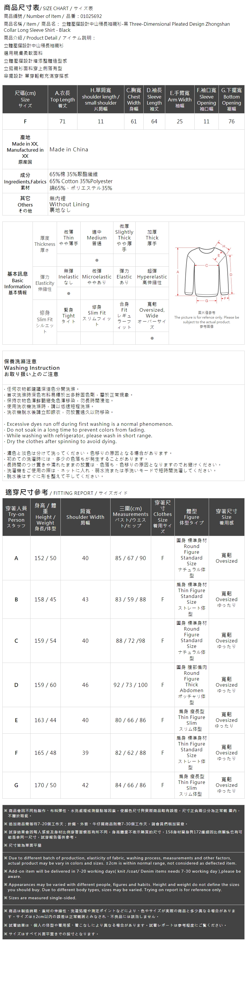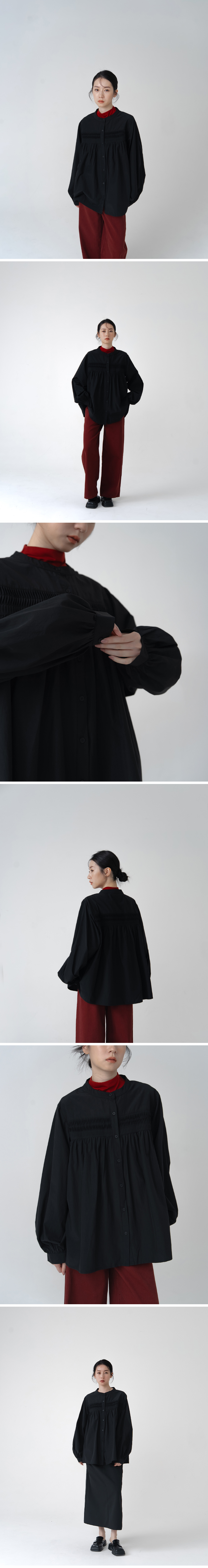 立体压折设计中山领长袖衬衫