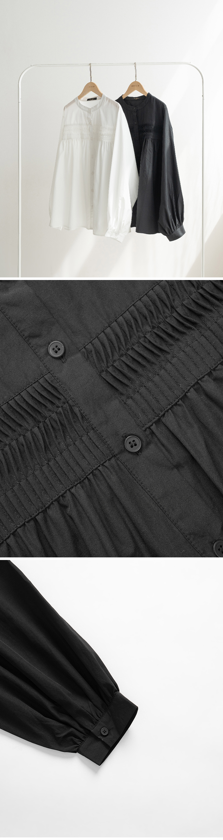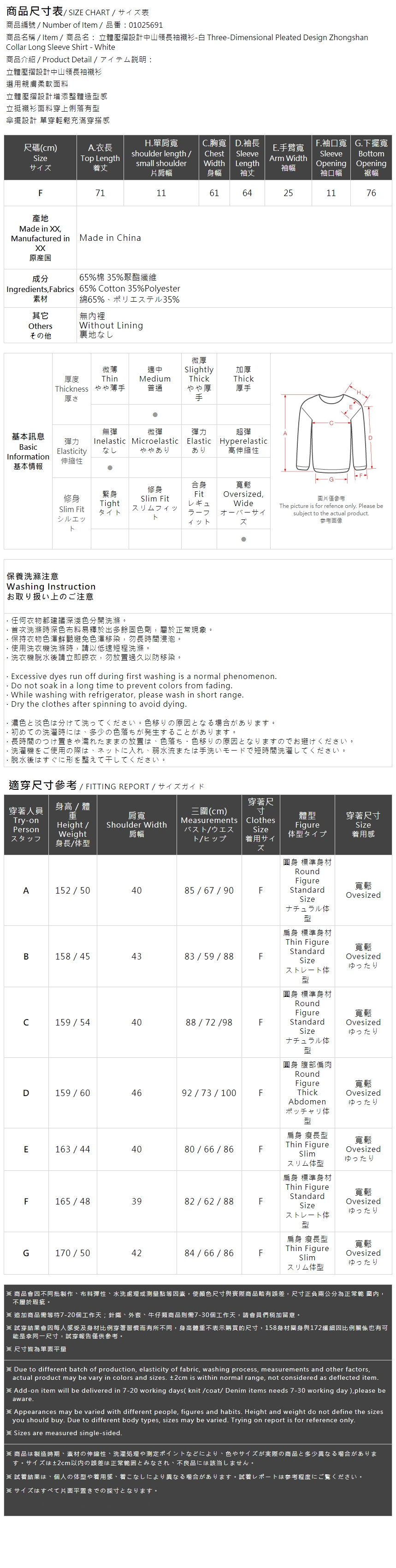 立体压折设计中山领长袖衬衫-白【01025691】现+预