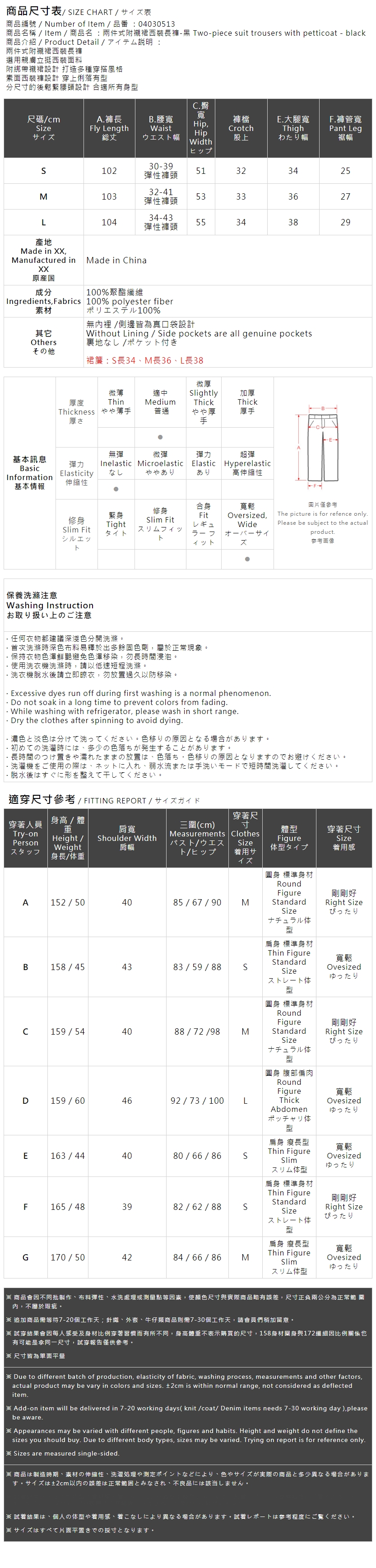 两件式附衬裙西装长裤-黑 S/M/L【04030513】现+预